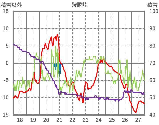 | 日 | 時 | 気温 | 降水 | 風向/風速 | 日照 | 積雪 | 降雪 |
