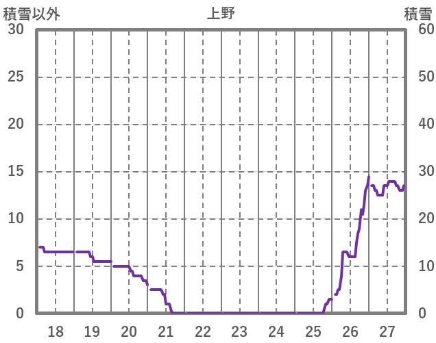 | 日 | 時 | 気温 | 降水 | 風向/風速 | 日照 | 積雪 | 降雪 |