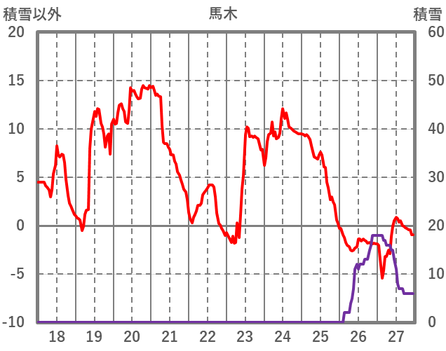 | 日 | 時 | 気温 | 降水 | 風向/風速 | 日照 | 積雪 | 降雪 |