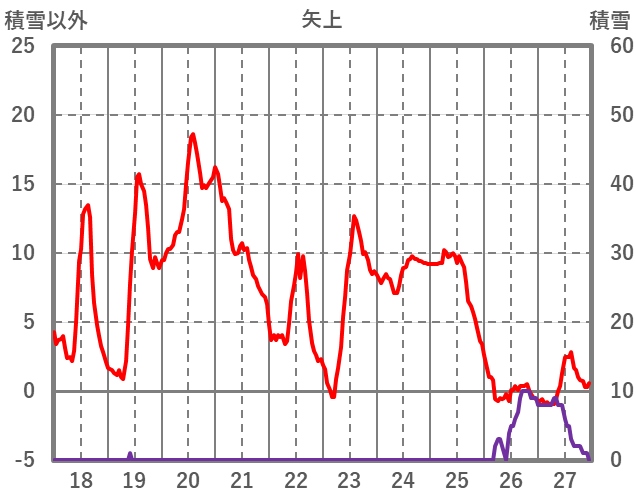 | 日 | 時 | 気温 | 降水 | 風向/風速 | 日照 | 積雪 | 降雪 |