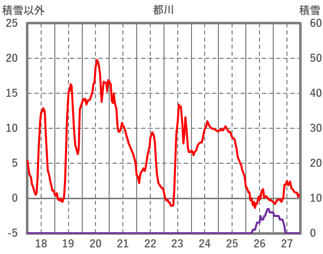 | 日 | 時 | 気温 | 降水 | 風向/風速 | 日照 | 積雪 | 降雪 |