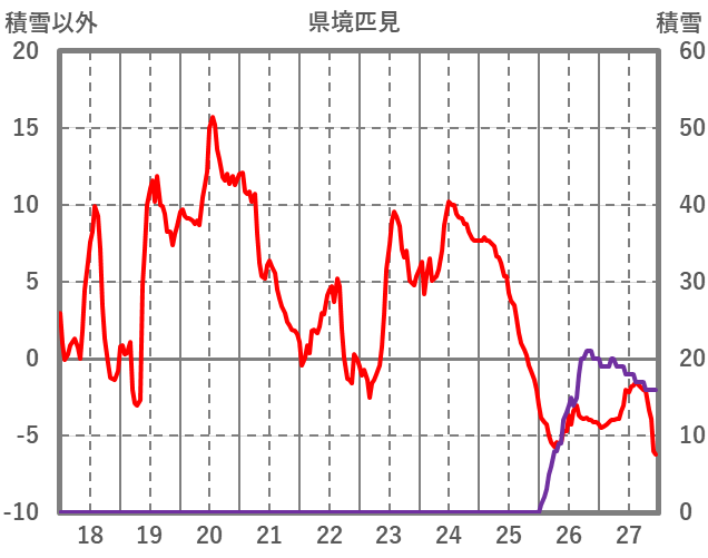 | 日 | 時 | 気温 | 降水 | 風向/風速 | 日照 | 積雪 | 降雪 |