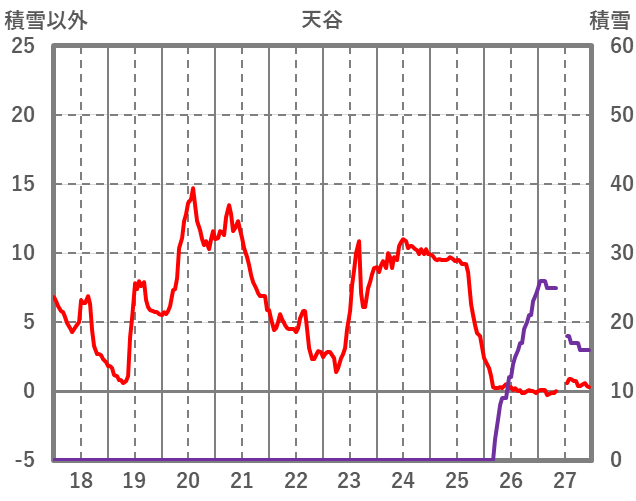 | 日 | 時 | 気温 | 降水 | 風向/風速 | 日照 | 積雪 | 降雪 |