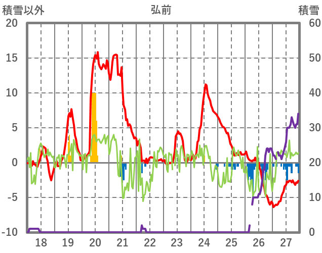 | 日 | 時 | 気温 | 降水 | 風向/風速 | 日照 | 積雪 | 降雪 |