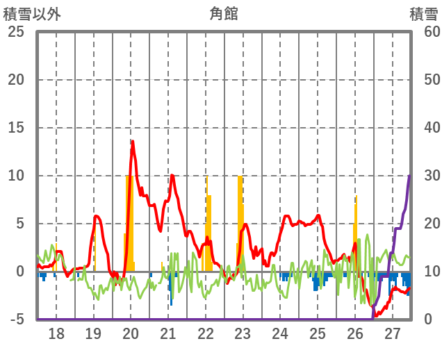 | 日 | 時 | 気温 | 降水 | 風向/風速 | 日照 | 積雪 | 降雪 |