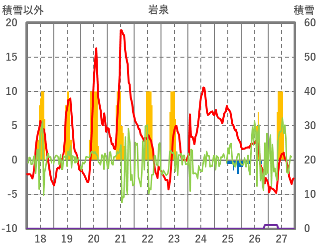 | 日 | 時 | 気温 | 降水 | 風向/風速 | 日照 | 積雪 | 降雪 |