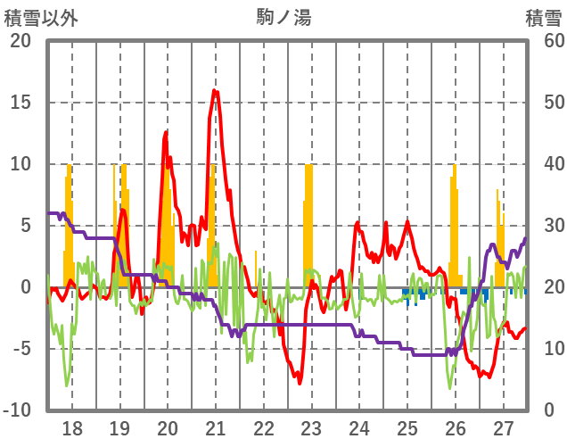 | 日 | 時 | 気温 | 降水 | 風向/風速 | 日照 | 積雪 | 降雪 |