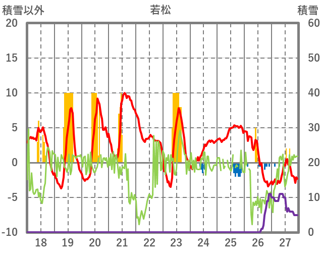 | 日 | 時 | 気温 | 降水 | 風向/風速 | 日照 | 積雪 | 降雪 |