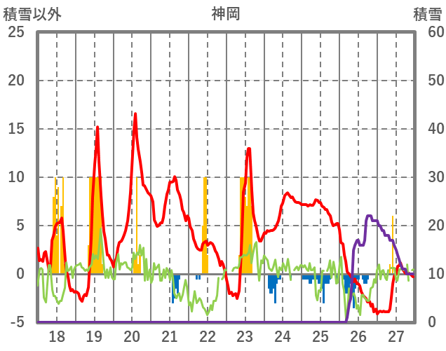| 日 | 時 | 気温 | 降水 | 風向/風速 | 日照 | 積雪 | 降雪 |