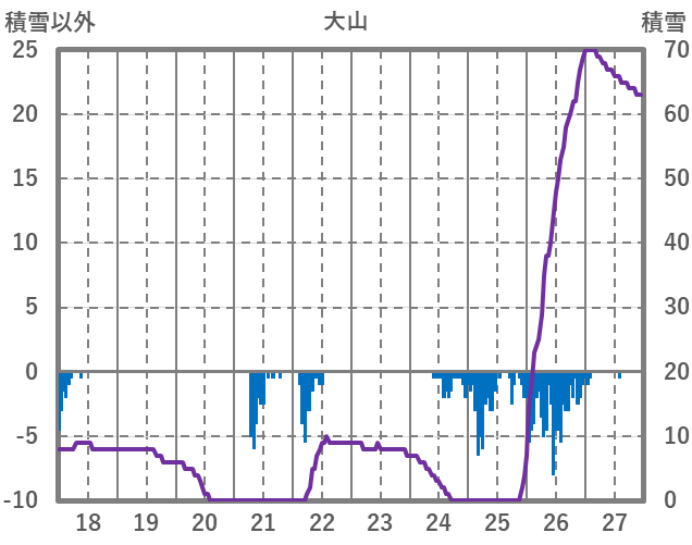 | 日 | 時 | 気温 | 降水 | 風向/風速 | 日照 | 積雪 | 降雪 |