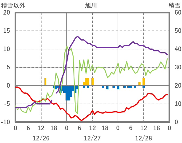 | 日 | 時 | 気温 | 降水 | 風向/風速 | 日照 | 積雪 | 降雪 |