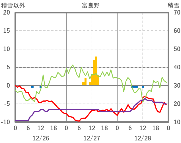 | 日 | 時 | 気温 | 降水 | 風向/風速 | 日照 | 積雪 | 降雪 |