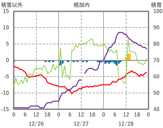 | 日 | 時 | 気温 | 降水 | 風向/風速 | 日照 | 積雪 | 降雪 |