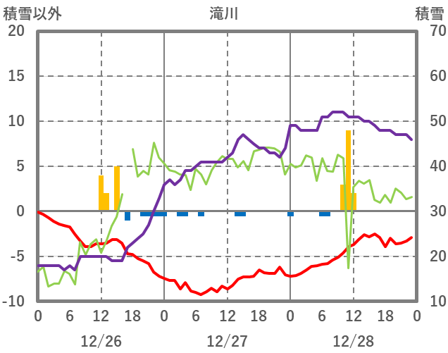 | 日 | 時 | 気温 | 降水 | 風向/風速 | 日照 | 積雪 | 降雪 |