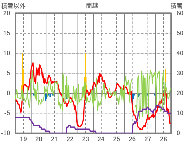 | 日 | 時 | 気温 | 降水 | 風向/風速 | 日照 | 積雪 | 降雪 |