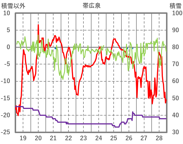 | 日 | 時 | 気温 | 降水 | 風向/風速 | 日照 | 積雪 | 降雪 |