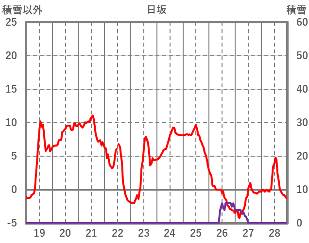 | 日 | 時 | 気温 | 降水 | 風向/風速 | 日照 | 積雪 | 降雪 |