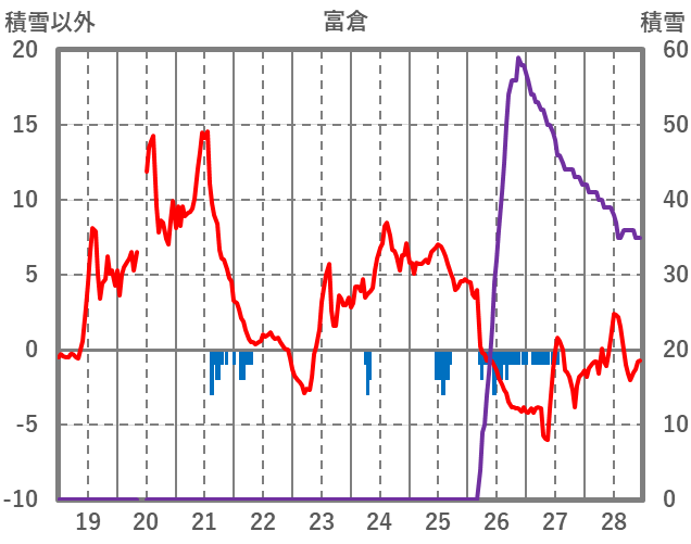 | 日 | 時 | 気温 | 降水 | 風向/風速 | 日照 | 積雪 | 降雪 |