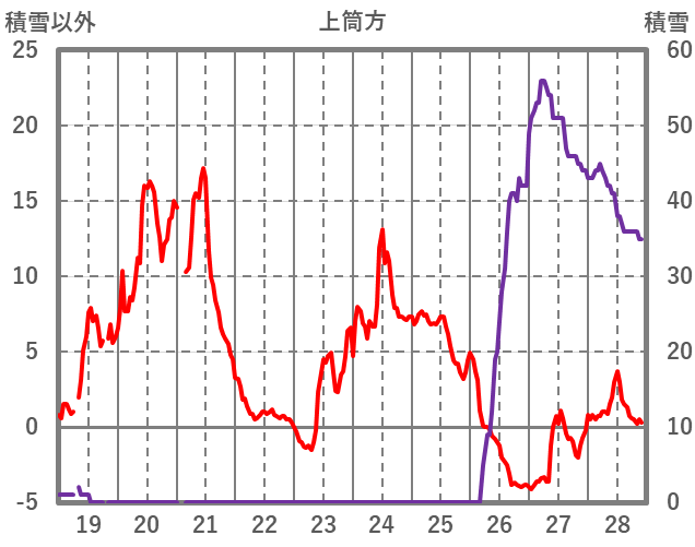 | 日 | 時 | 気温 | 降水 | 風向/風速 | 日照 | 積雪 | 降雪 |