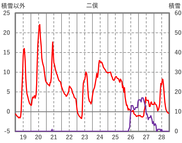 | 日 | 時 | 気温 | 降水 | 風向/風速 | 日照 | 積雪 | 降雪 |