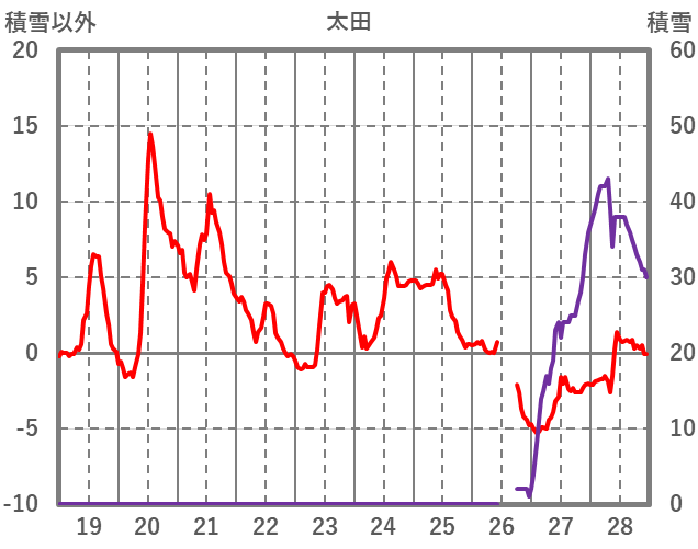 | 日 | 時 | 気温 | 降水 | 風向/風速 | 日照 | 積雪 | 降雪 |
