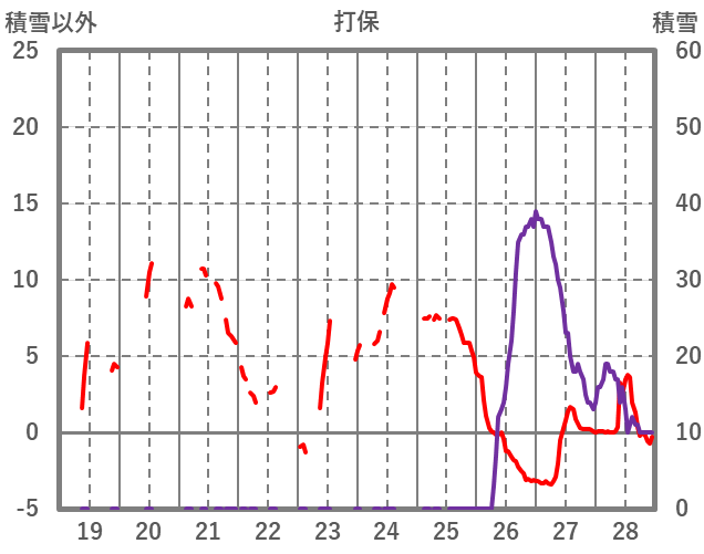 | 日 | 時 | 気温 | 降水 | 風向/風速 | 日照 | 積雪 | 降雪 |