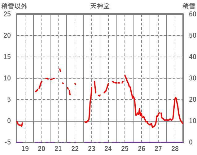 | 日 | 時 | 気温 | 降水 | 風向/風速 | 日照 | 積雪 | 降雪 |