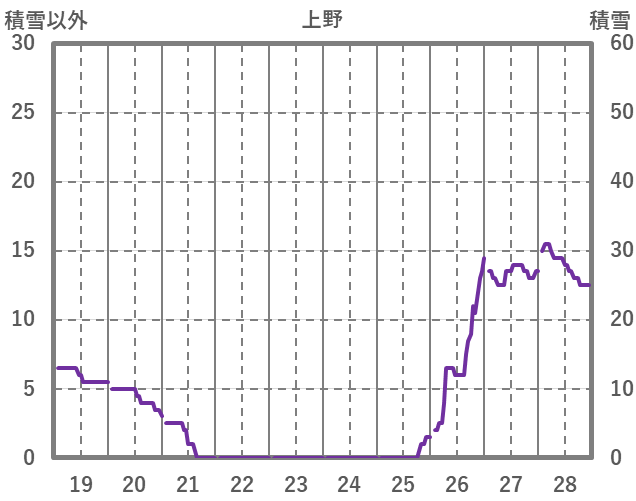 | 日 | 時 | 気温 | 降水 | 風向/風速 | 日照 | 積雪 | 降雪 |