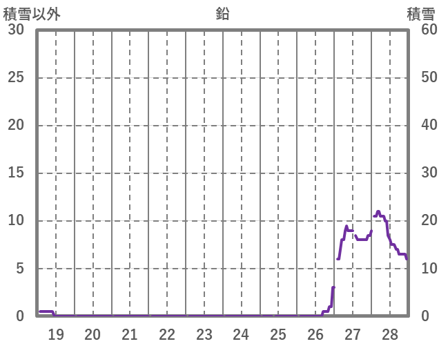 | 日 | 時 | 気温 | 降水 | 風向/風速 | 日照 | 積雪 | 降雪 |