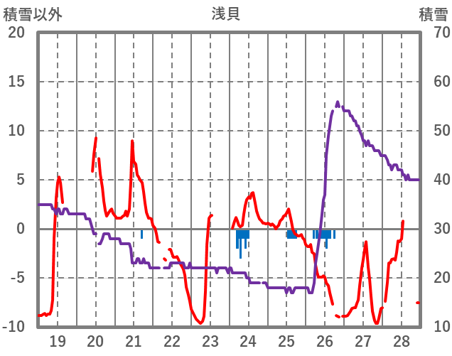 | 日 | 時 | 気温 | 降水 | 風向/風速 | 日照 | 積雪 | 降雪 |
