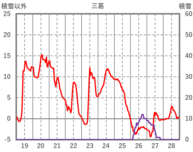 | 日 | 時 | 気温 | 降水 | 風向/風速 | 日照 | 積雪 | 降雪 |