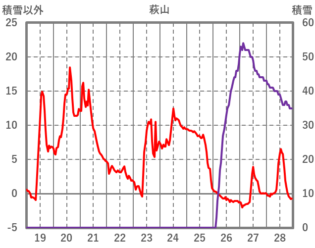 | 日 | 時 | 気温 | 降水 | 風向/風速 | 日照 | 積雪 | 降雪 |