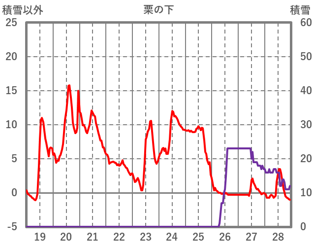 | 日 | 時 | 気温 | 降水 | 風向/風速 | 日照 | 積雪 | 降雪 |