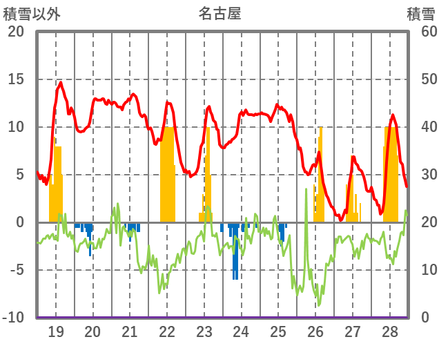 | 日 | 時 | 気温 | 降水 | 風向/風速 | 日照 | 積雪 | 降雪 |