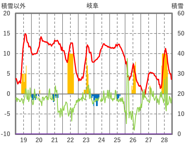 | 日 | 時 | 気温 | 降水 | 風向/風速 | 日照 | 積雪 | 降雪 |