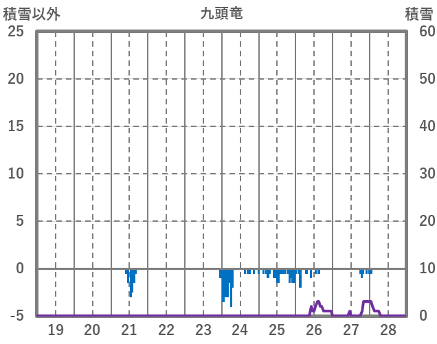 | 日 | 時 | 気温 | 降水 | 風向/風速 | 日照 | 積雪 | 降雪 |