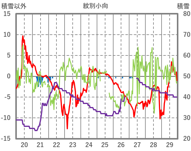 | 日 | 時 | 気温 | 降水 | 風向/風速 | 日照 | 積雪 | 降雪 |