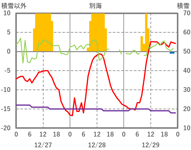 | 日 | 時 | 気温 | 降水 | 風向/風速 | 日照 | 積雪 | 降雪 |