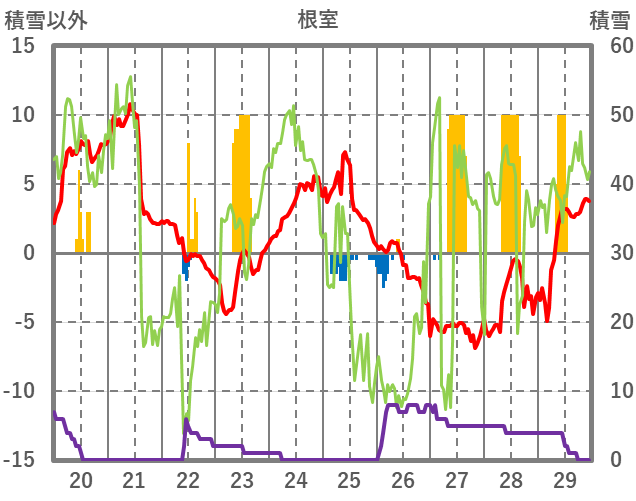 | 日 | 時 | 気温 | 降水 | 風向/風速 | 日照 | 積雪 | 降雪 |