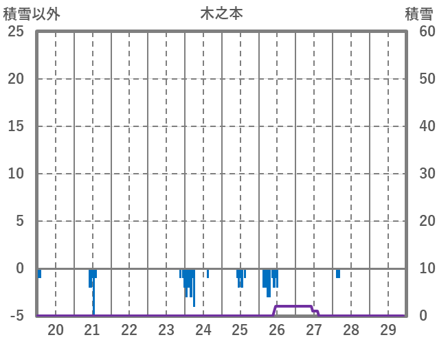 | 日 | 時 | 気温 | 降水 | 風向/風速 | 日照 | 積雪 | 降雪 |