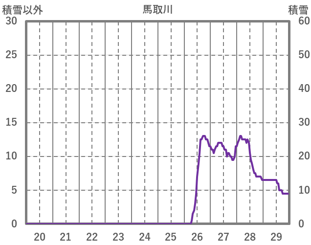 | 日 | 時 | 気温 | 降水 | 風向/風速 | 日照 | 積雪 | 降雪 |