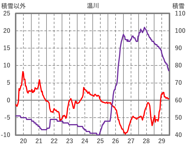 | 日 | 時 | 気温 | 降水 | 風向/風速 | 日照 | 積雪 | 降雪 |