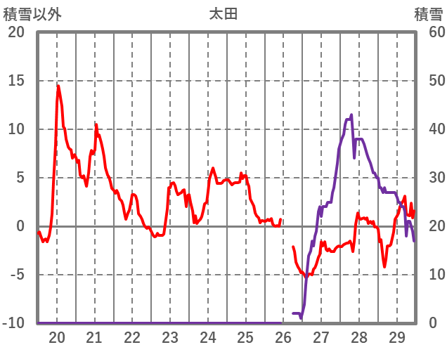| 日 | 時 | 気温 | 降水 | 風向/風速 | 日照 | 積雪 | 降雪 |