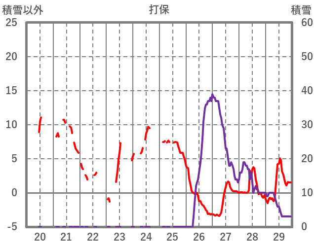 | 日 | 時 | 気温 | 降水 | 風向/風速 | 日照 | 積雪 | 降雪 |