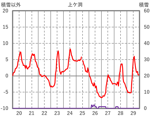 | 日 | 時 | 気温 | 降水 | 風向/風速 | 日照 | 積雪 | 降雪 |
