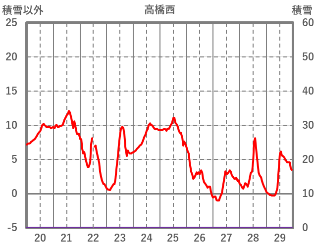 | 日 | 時 | 気温 | 降水 | 風向/風速 | 日照 | 積雪 | 降雪 |