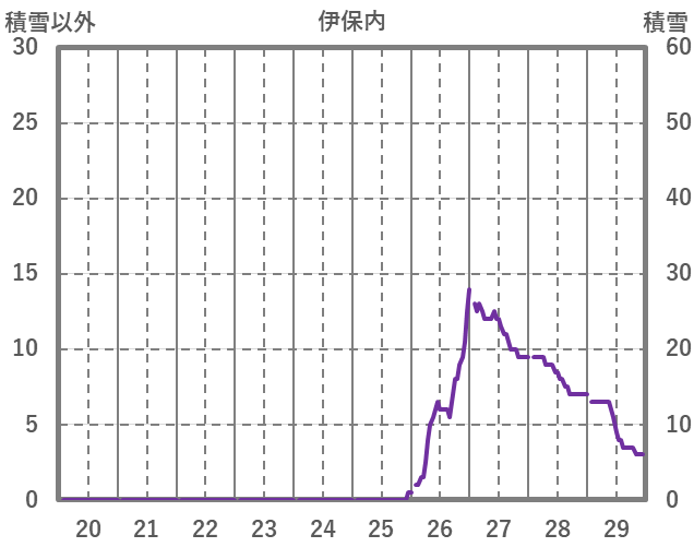 | 日 | 時 | 気温 | 降水 | 風向/風速 | 日照 | 積雪 | 降雪 |