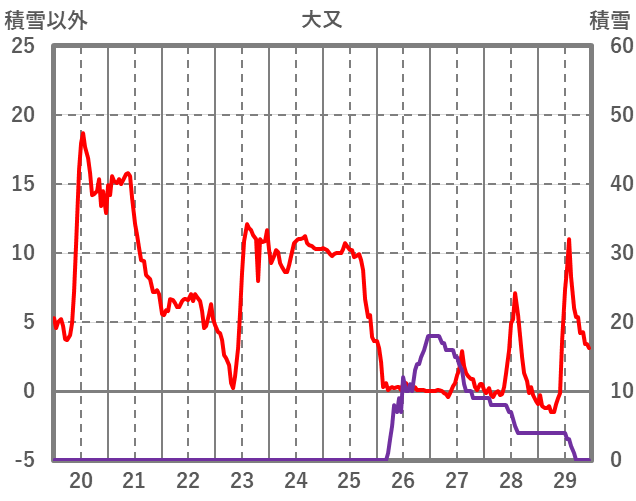 | 日 | 時 | 気温 | 降水 | 風向/風速 | 日照 | 積雪 | 降雪 |