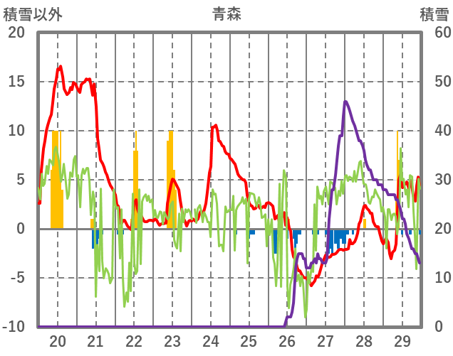 | 日 | 時 | 気温 | 降水 | 風向/風速 | 日照 | 積雪 | 降雪 |