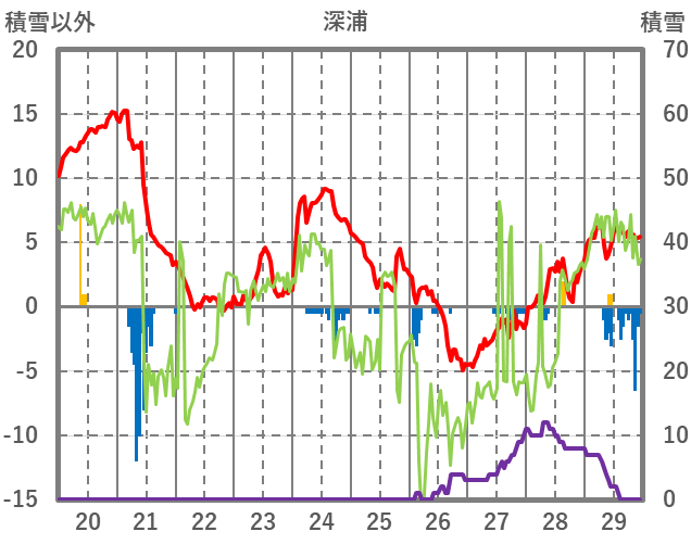 | 日 | 時 | 気温 | 降水 | 風向/風速 | 日照 | 積雪 | 降雪 |